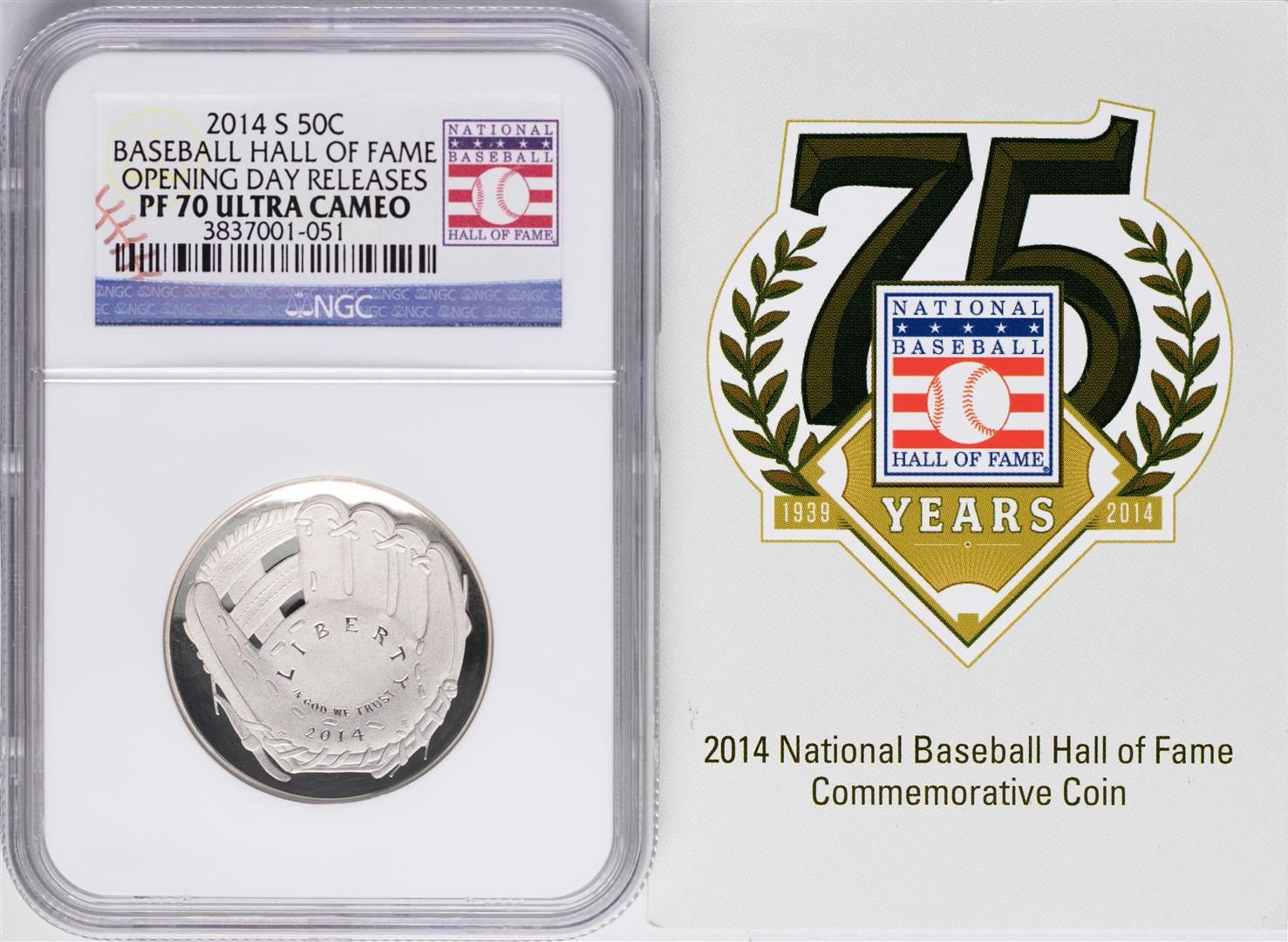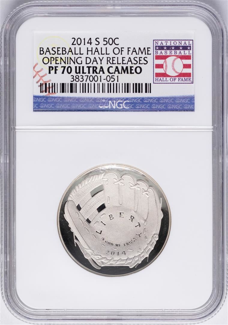 One Opening Day 2014-S Proof Baseball Hall of Fame Half Dollar Coin NGC PF70. NGC Certified.
