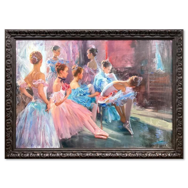 "Opening Night" is a hand embellished limited edition giclee on canvas by Constantin Lvovich, numbered 13/100 inverso and hand signed by the artist. This piece comes framed. Includes Letter of Authenticity. Measures approx. 33" x 45" (frame), 27.5" x 40" (image). There is some wear on the frame.