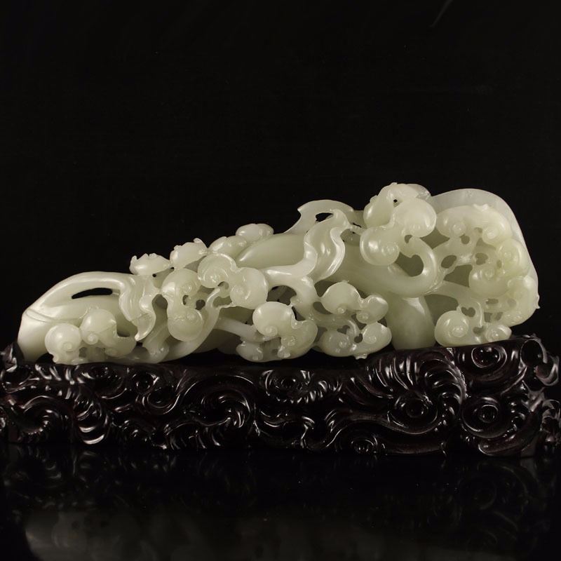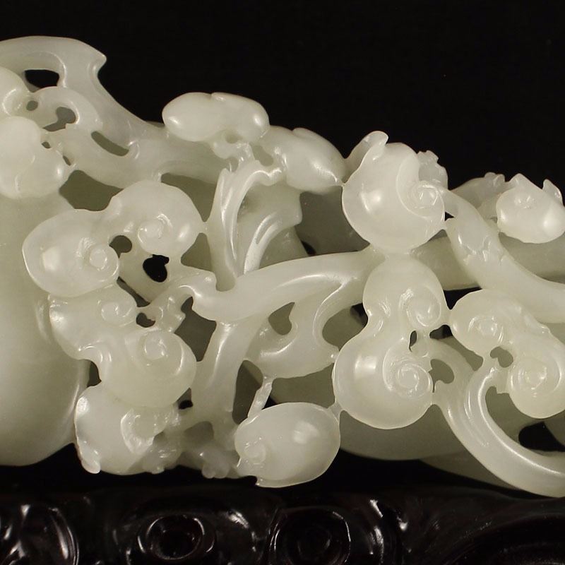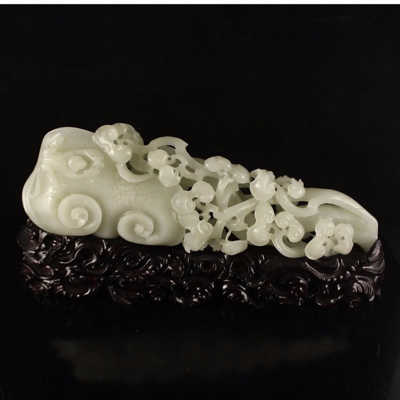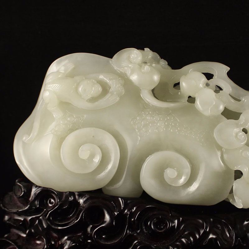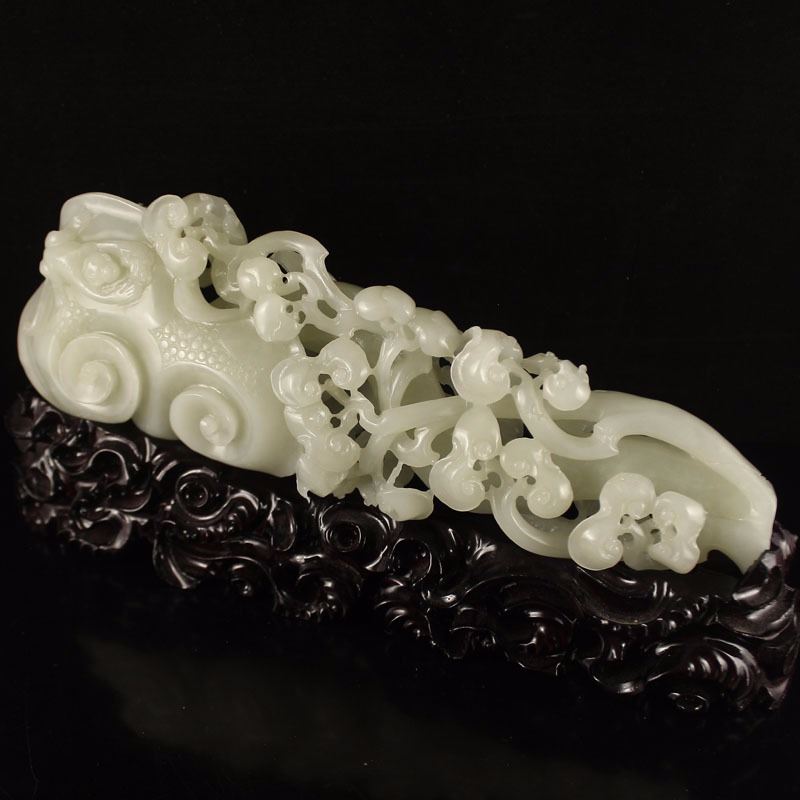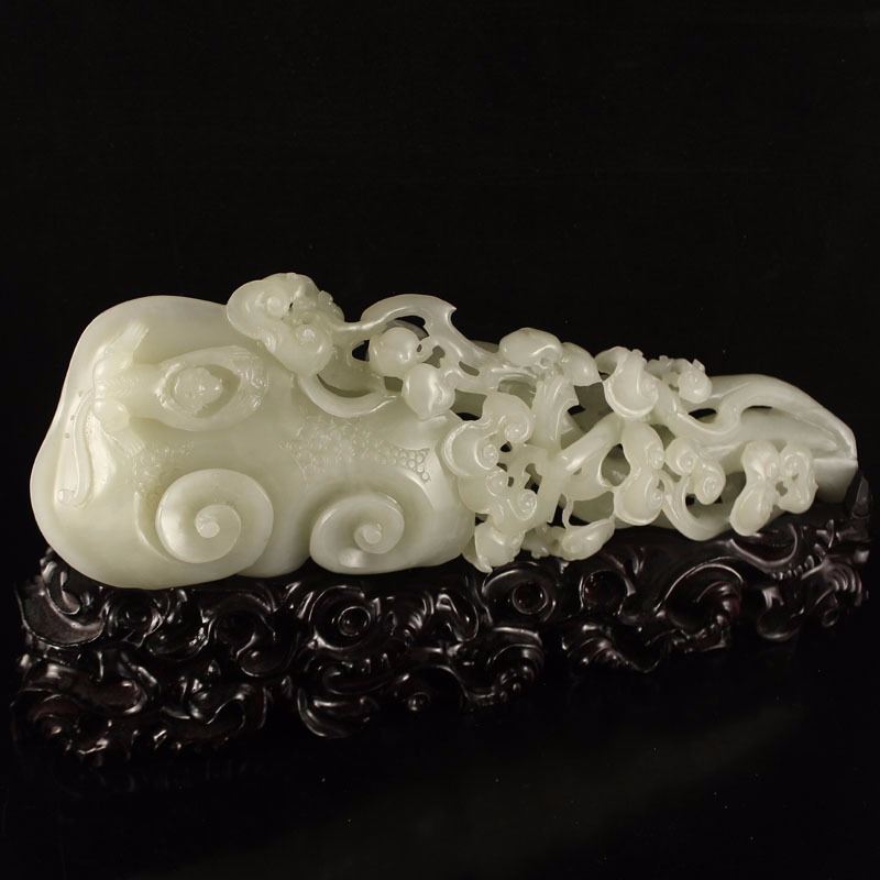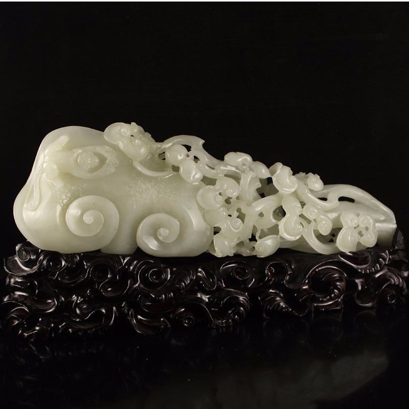 Openwork Chinese White Hetian Jade Ruyi Monkey Statue Dimension:280x90x50(mm)11.02x3.54x1.97(inches) Weight 1.89 lbs/857 g The total weight does not include the base. The base is included after you have won the auction.