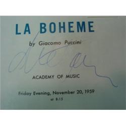 Opera Autograph: Giuseppe di Stefano on program for The Philadelphia Lyric Opera Company for "La Boheme" on Nov. 20, 1959. Di Stefano sang Rodolfo. Very good condition.