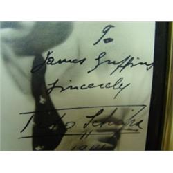 Autographed photos of Marian Talley and Tito Schipa dated 1941. Framed 8-1/2" x 10", gold metal. Very good condition.
