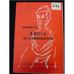 Opera Autographs: Tina Garfi and John Rossi on program from Philadelphia Grand Opera Co. 1959. "Lucia di Lammermoor". Very good condition. Does not photograph well due to gloss of paper.