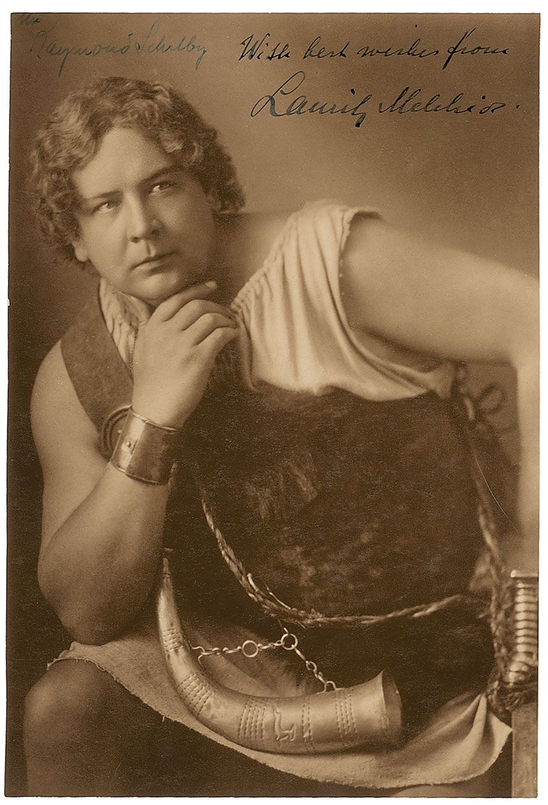 Lauritz Melchior: Vintage matte-finish 6.75 x 10 photo of Melchior in costume for an ancient role, inscribed in another hand and signed in fountain pen, “With best wishes from Lauritz Melchior.” In fine condition, with trimmed edges.