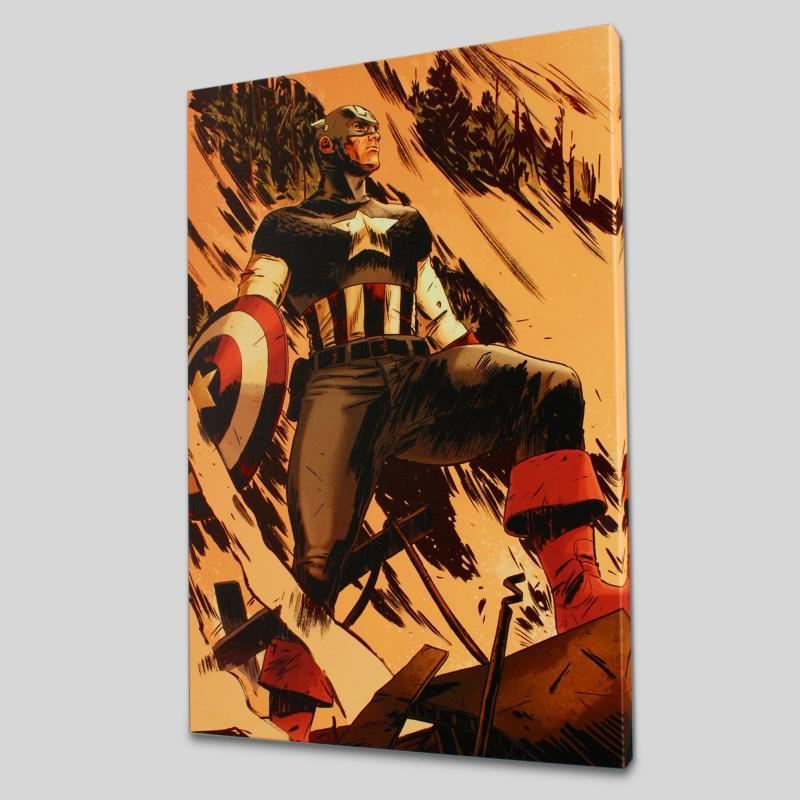 A piece of comic book history, this limited edition, from original art by Mitchell Breitweiser, depicts an iconic image of Captain America. Since 2005, Mitchell Breitweiser has been penciling, inking, and painting his way through dozens of Marvel comic books and covers. Mitch has left a lasting impression with his Captain America books, including 2010's Captain America: Patriot Mini Series. "Operation Zero-Point #1" is a limited edition numbered giclee on stretched canvas by Mitchell Breitweiser presented by Marvel Comics. This piece comes gallery wrapped. Includes Certificate of Authenticity! Measure approx. 18" x 27" (image); 1.5" (depth).