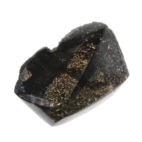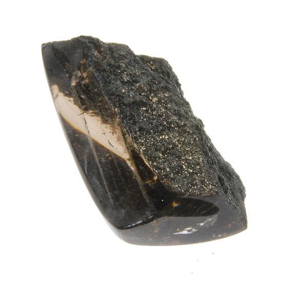 Excellent polished optically clear quartz specimen backed with pyrite crystals; 3.5"; 300 grams