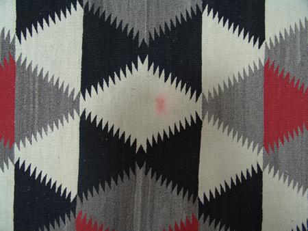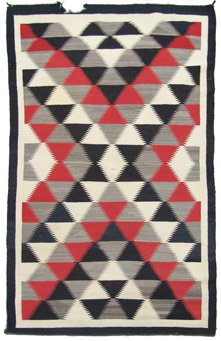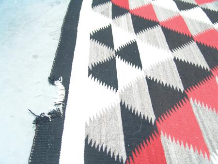 Black, red, gray and white weaving with optical serrated motif. Condition: One damaged area on end. 6' x 3'6"