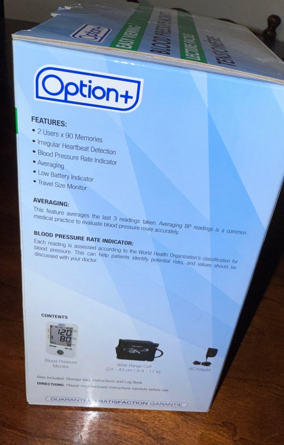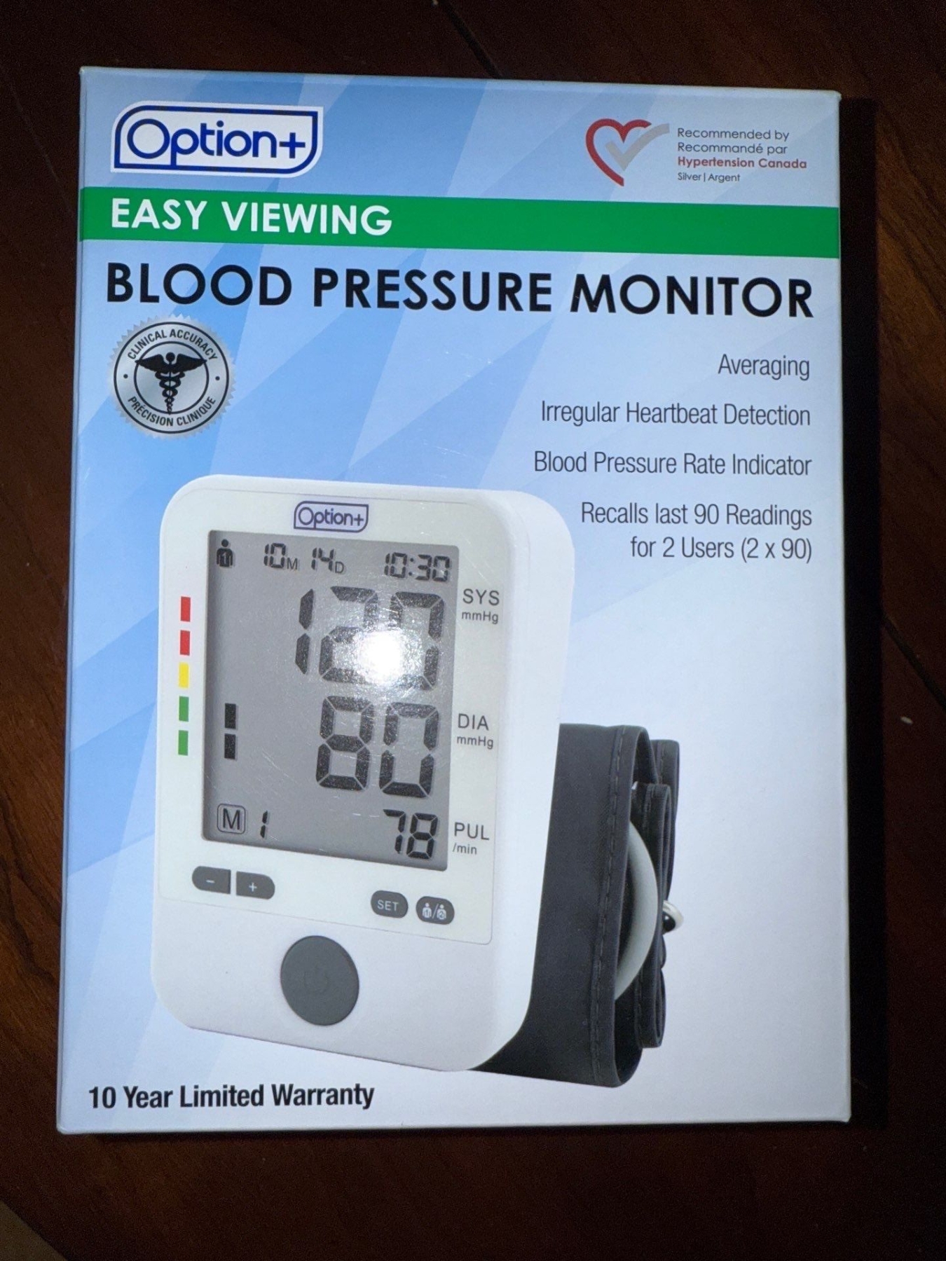 Option+ Easy Viewing Portable Blood Pressure Monitor (10 yr Warranty)
