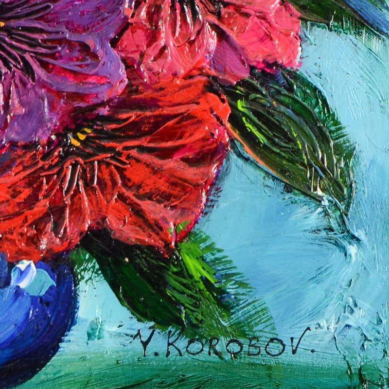 Orange Buds is an original acrylic painting on canvas by Yana Korobov, hand signed by the artist. Includes Letter of Authenticity. Measures approx. 20" x 20" (image).