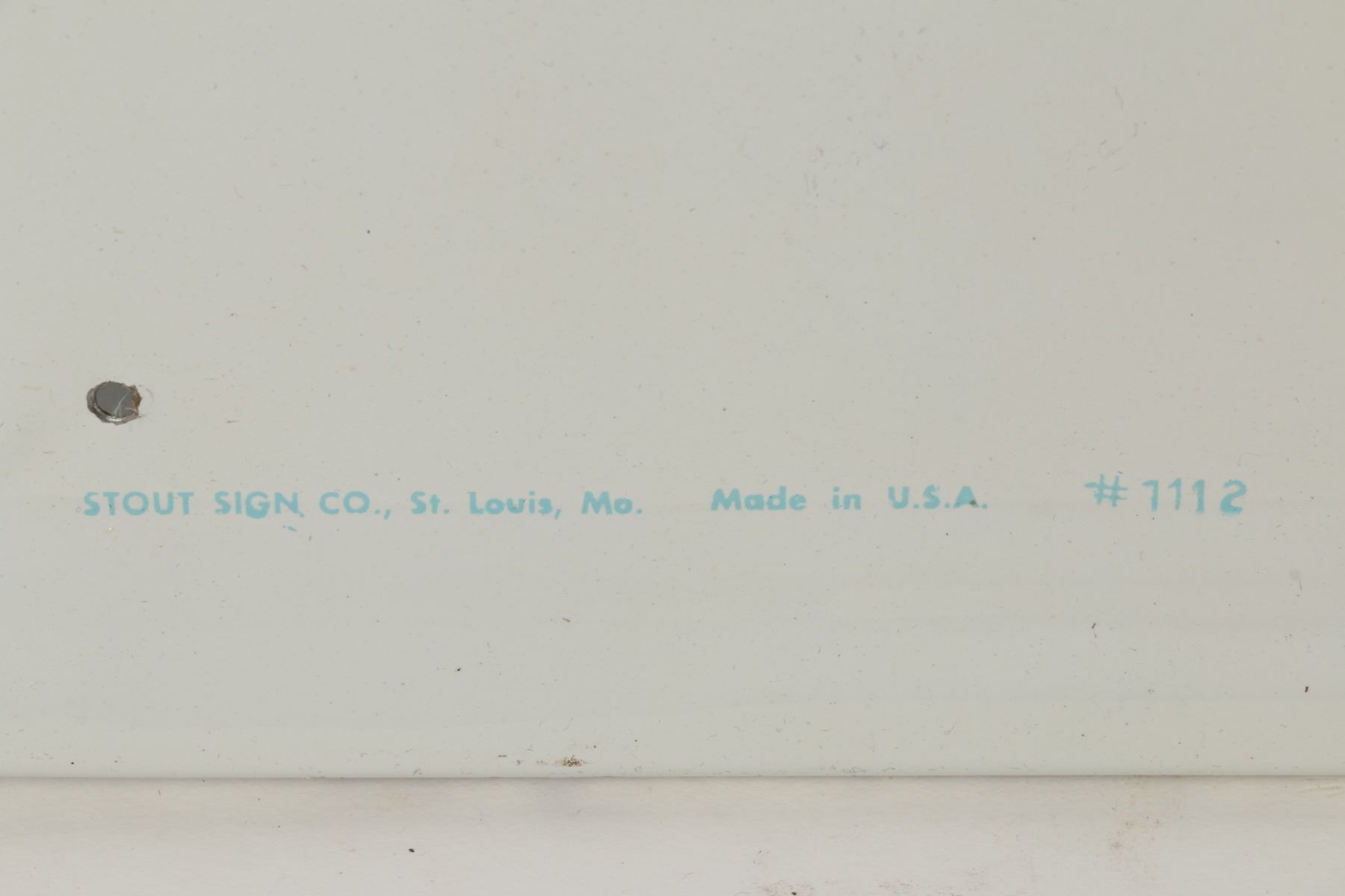 Marked, "Stout SIgn Co. St Louis, MO- Made in USA" lower left edge. 54.25" x 18". Minor touch up along right edge. $600-800.