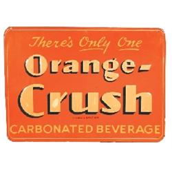 Orange Crush embossed tin sign, VG condition, 27"W x 20"H.