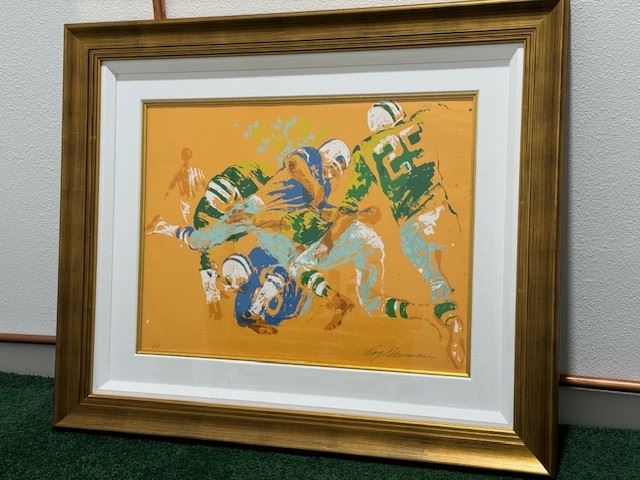 "Orange Football" by LeRoy Neiman (1921-2012) hand signed Limited Edition Serigraph AP (Artist Proof) - Framed Size = 38" x 32"