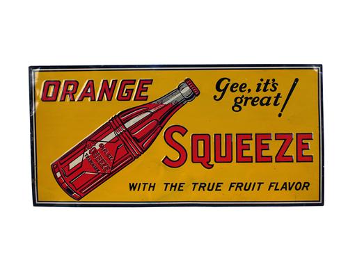 Orange Squeeze tin embossed sign 14 x 28 " fine cond