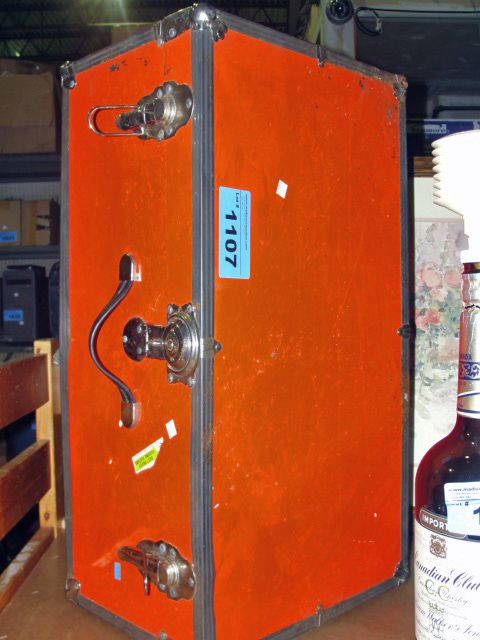 Orange metal storage trunk