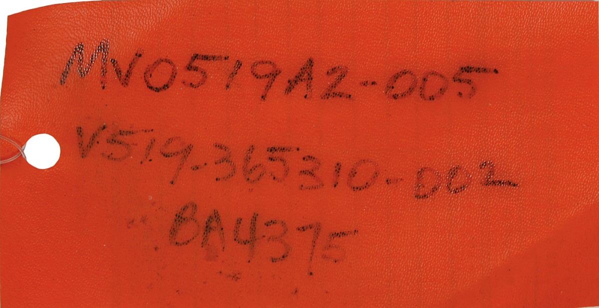 Available to US bidders only. Shuttle Orbiter Multi-Layer Insulation (MLI) thermal flown on an undetermined mission. The blanket measures approximately 42 x 15, numbered V519-365310-002 and 03953-BA-4375. In very good condition. A KSC non-conforming material tag is also attached to the blanket. Flown status presumed by shuttle specialist Ken Havekotte. From the collection of aerospace memorabilia specialist Ken Havekotte.