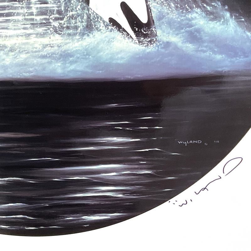 "Orca Moon" is a limited edition mixed media on paper, numbered and hand signed by Wyland. Includes Certificate of Authenticity. Measures approx. 22" x 22" (border), 19" x 19" (image-diameter). ** Please note: there are scuffs on the image that are visible from certain angles. **