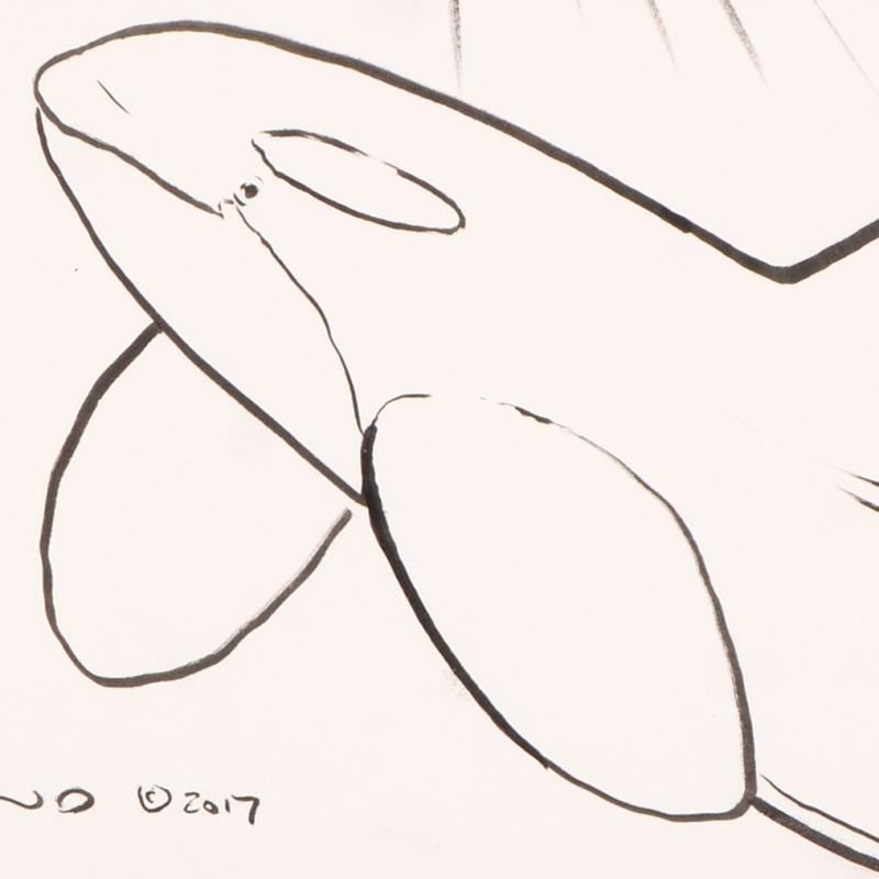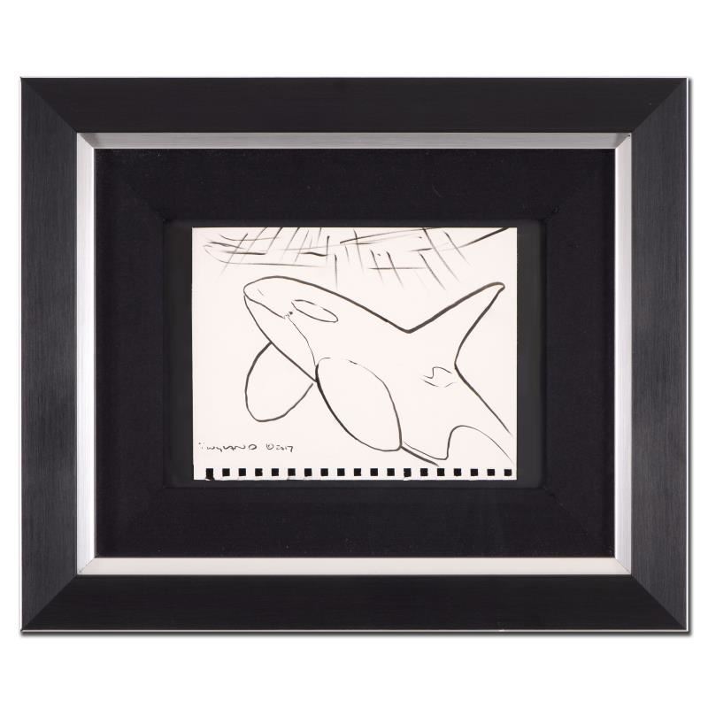 "Orca" is an original sketch on paper by Wyland, hand signed by the artist. This piece is custom framed. Includes Certificate of Authenticity. Measures approx. 18" x 15.5" (frame); 9.5" x 7" (image).