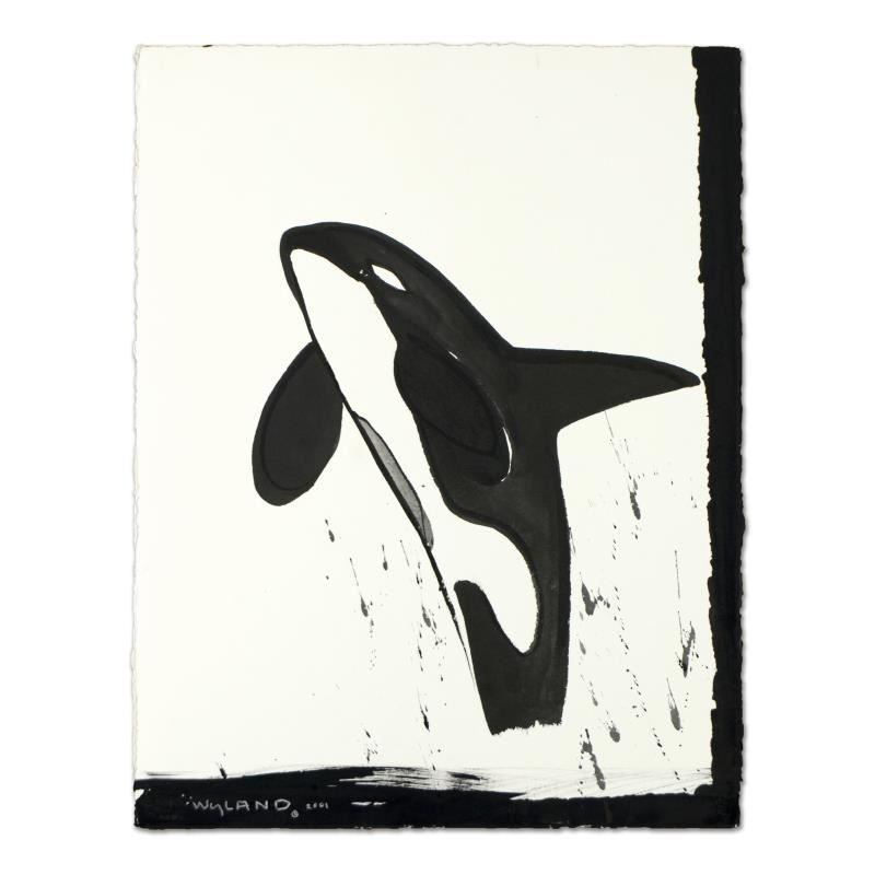 "Orca" is an original sumi ink painting on paper by Wyland, hand signed by the artist. Includes Certificate of Authenticity. Measures approx. 22.5" x 30" (image).