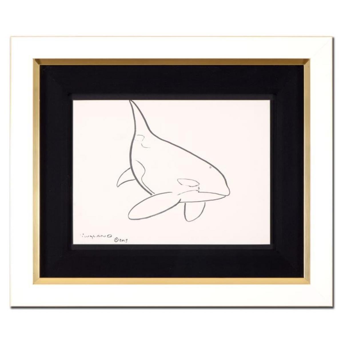 "Orca" is an original sketch on paper by Wyland, hand signed by the artist. This piece is custom framed. Includes Certificate of Authenticity. Measures approx. 21" x 17.5" (frame); 13" x 10" (image).