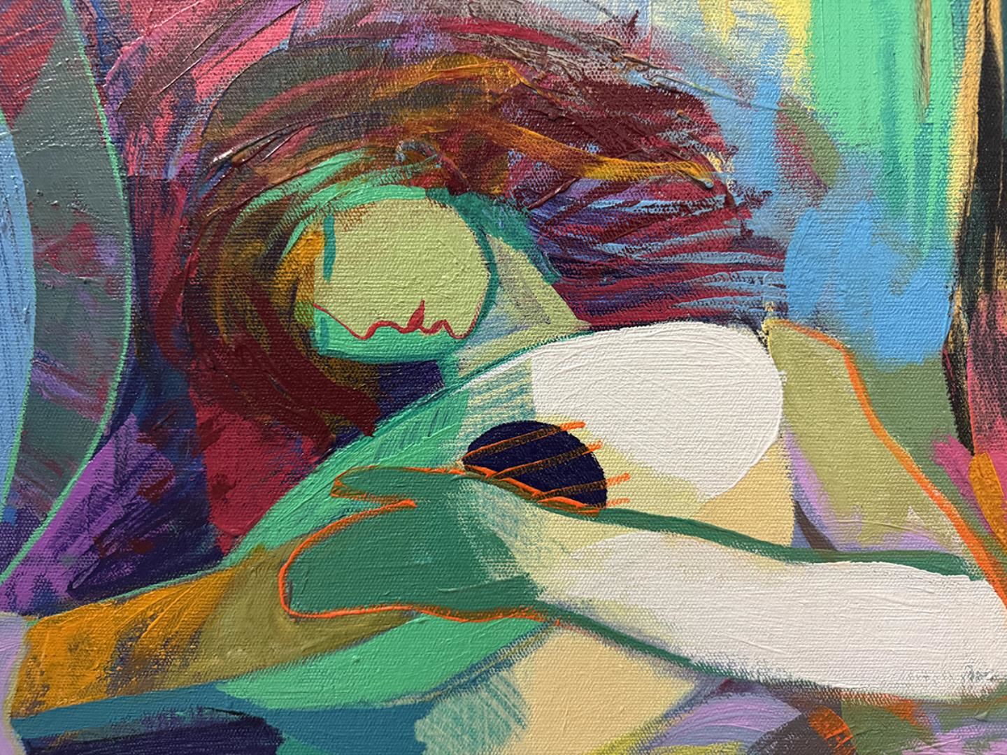 This magnificent original 28x60" oil artwork, a striking blend of colors and forms, is meticulously created on canvas28x60" and hand-signed by the artist, adding a personal touch that enhances its uniqueness