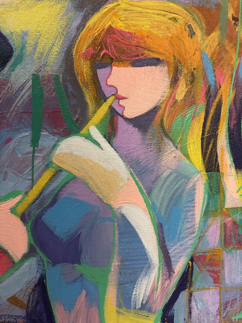 This magnificent original 28x60" oil artwork, a striking blend of colors and forms, is meticulously created on canvas28x60" and hand-signed by the artist, adding a personal touch that enhances its uniqueness