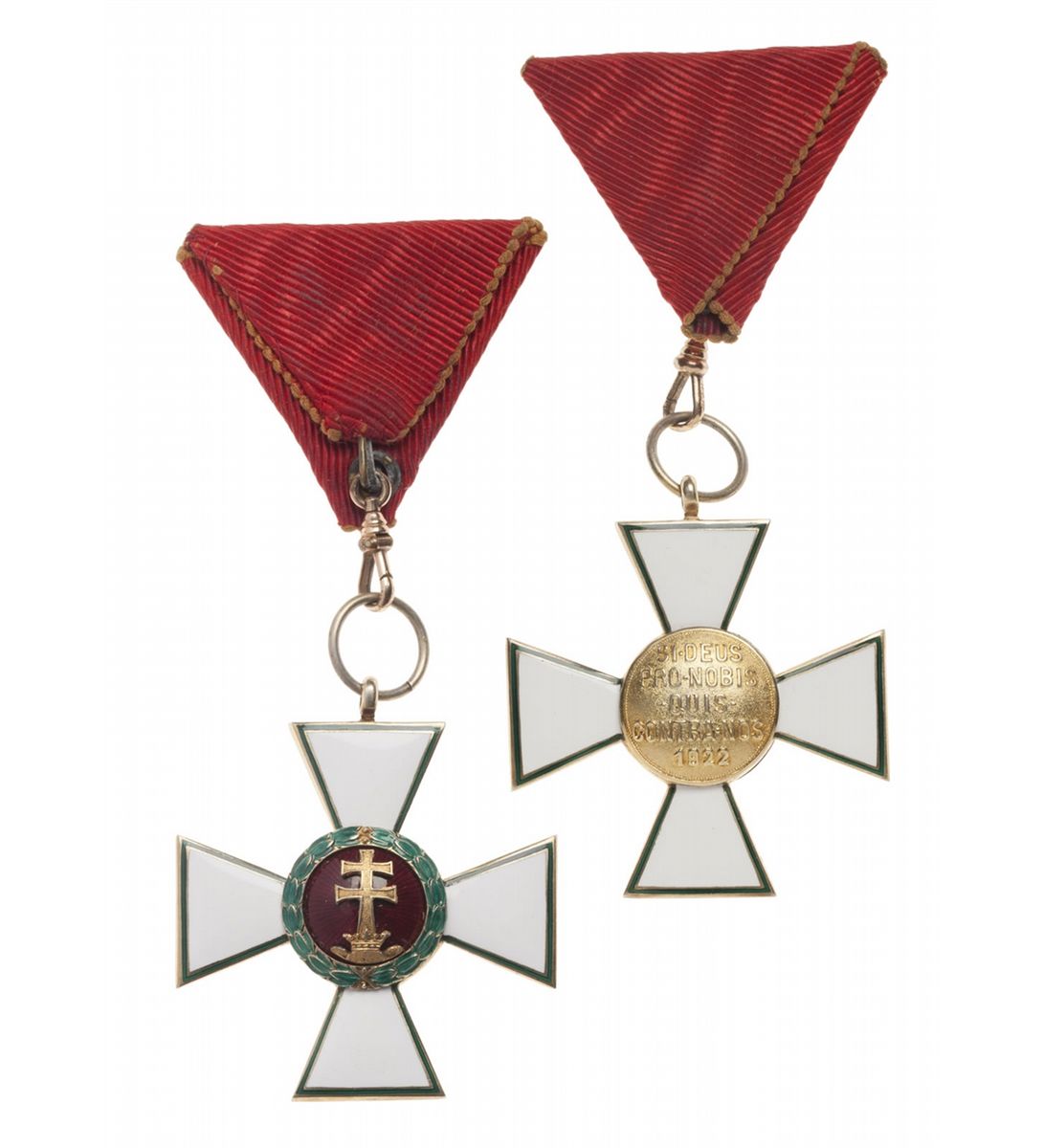 (Regency of Admiral Horthy, 1922-1944) Officer's Cross with Star Decoration and Swords. Breast Star, silver gilt, enamelled, of very convex shape, on reverse, centre escutcheon with order's motto "SI DEUS PRO NOBIS QUIS CONTRA NOS 1922". The military clas
