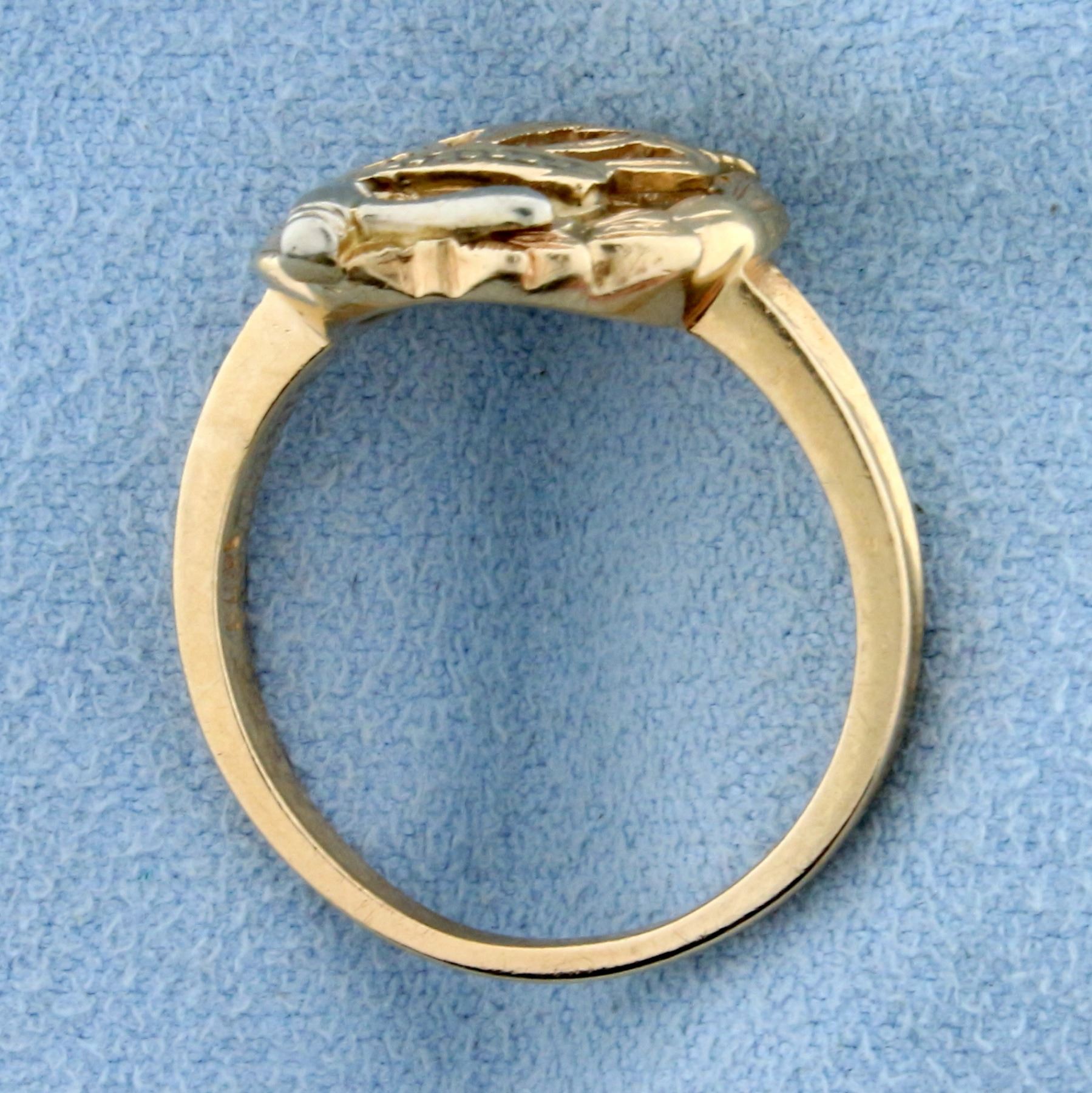 In 14K Yellow and White Gold. 1/2 inch long, size 7 1/4. 4.0g.