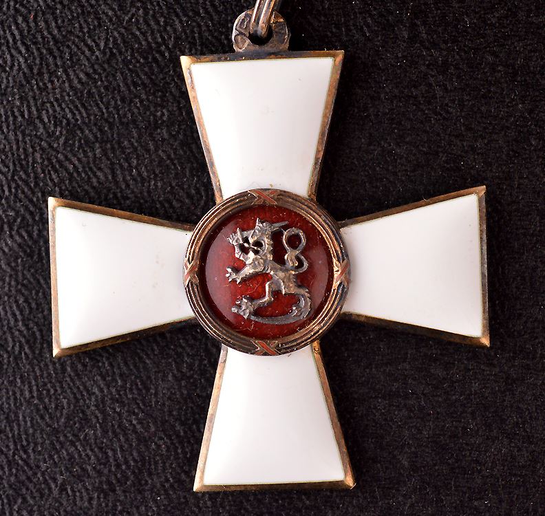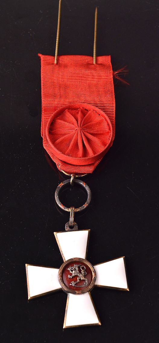 Finland, Order of the Lion, First Class, Slver, Gilt, White enamel, with ribbon. EF. Instituted in 1942. Barac#216