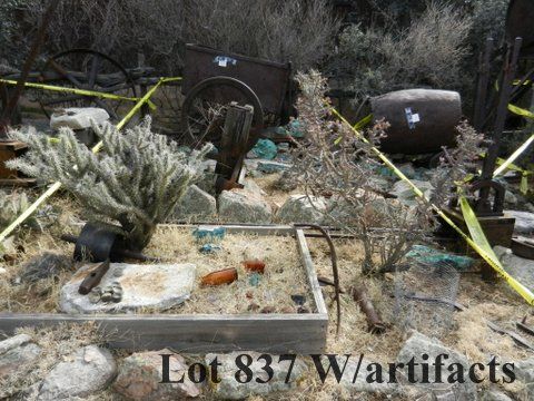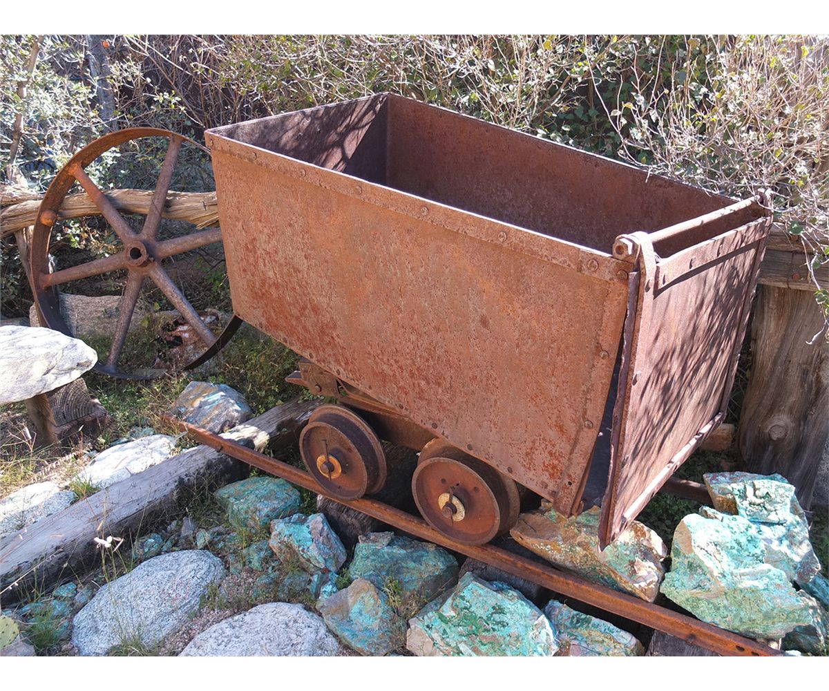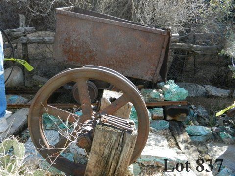 ore car, shieve wheel and artifacts. Bud Bassett Collection - HKA#66287