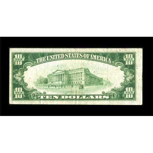 <B>Oregon City, OR</B></I> - $10 1929 Ty. 1 <B>The First NB</B></I> Ch. # 8556<BR> This institution was the sole issuer in this Clackamas County hamlet, with large notes from here still unreported. Only ten Series 1929 examples are known, with most closely held as the only representatives to cover this town. Track and Price shows only one offering since 1999, and just four since 1989. This high grade piece is nicer than any in the census save one uncirculated example. <B>Very Fine,</B></I> with a couple of unimportant pinholes. <BR><BR><b>Shipping:</b> Coins & Currency (<a target="_blank" href="http://www.heritageauctions.com/common/shipping.php">view shipping information</a>)