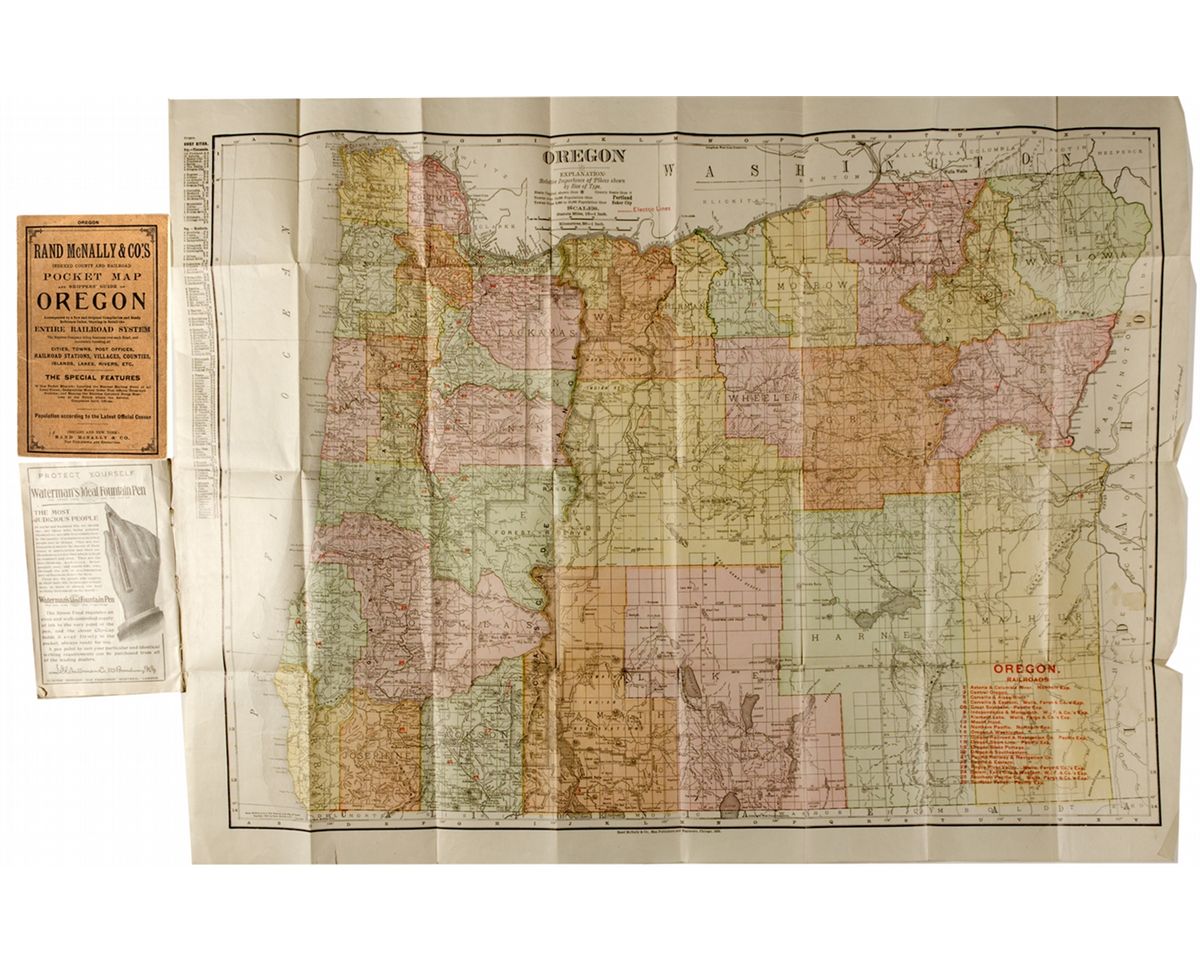 Rand McNally & Co.’s indexed and railroad pocket map and shippers’ guide, in color. Accompanied by a new and original compilation and ready reference index, showing in detail the entire railroad system—cities, towns, post office, railroad stations, villages, counties, islands, lakes, rivers, electrical lines, etc. Population according to the latest official census. Measures 21" x 27” when unfolded. Brown paper cover. -59678