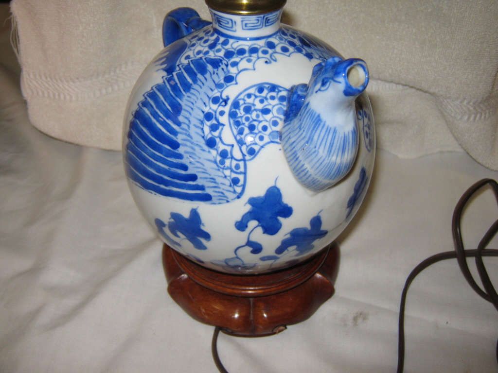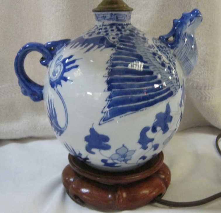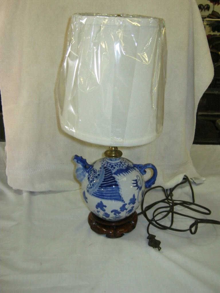 Orential Lamp 18 tall x 9 wide With Shade and Has Wood Base.
