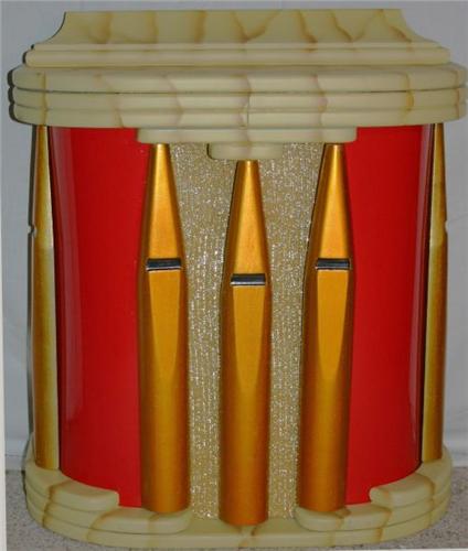 Wooden Marble-Glo jukebox speaker with three organ pipes. Excellent condition.
