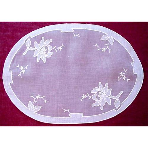 This is so nice, oval organdy dembroidered doily - Excellent condition - Measures about 13 1/4" x 10" - US Buyer please pay 3.00 - Thank You very much for looking!