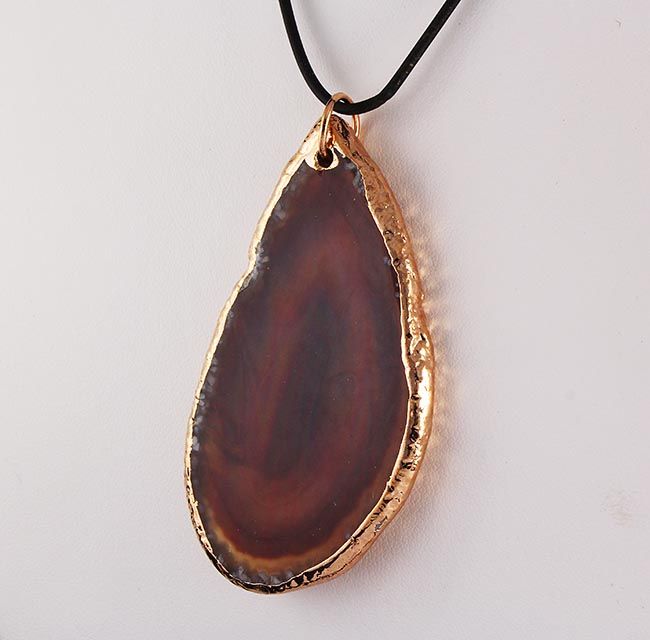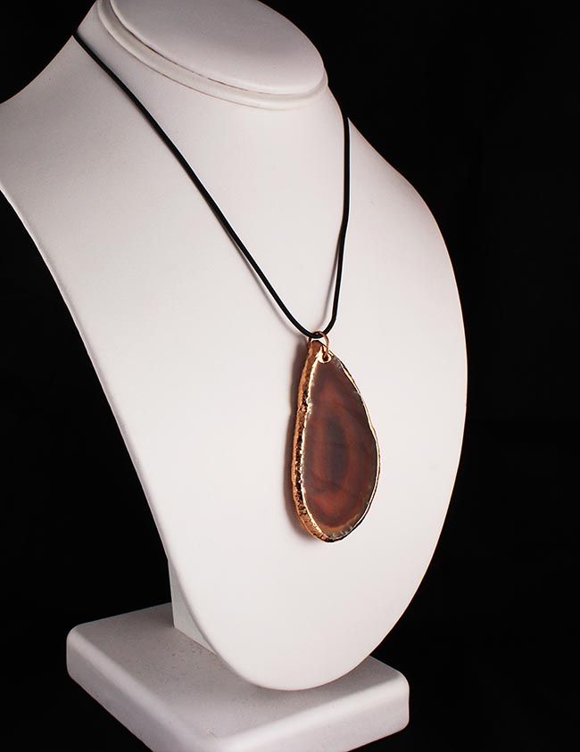 Organic Natural Brown Agate Big Slice Pendant **|**|** 103.50CARAT Natural Stone Slab Faceted Brown Agate Pendant with Black Rubber Cord Necklace ; MSRP: $0