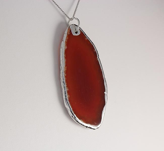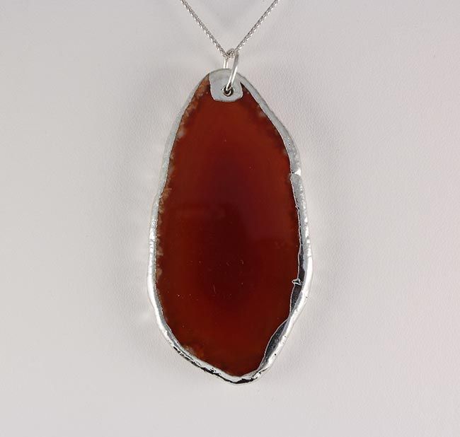 Organic Natural Carnelian Agate Big Slice Pendant **|**|** 98.00CARAT Natural Stone Slab Faceted Carnelian Agate Pendant with Black Rubber Cord Necklace ; MSRP: $0