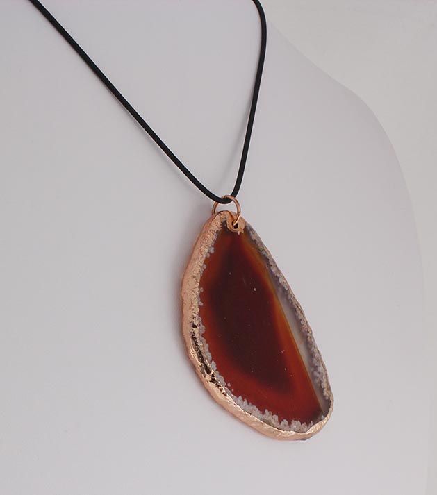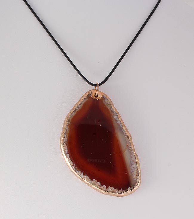 Organic Natural Carnelian Agate Big Slice Pendant **|**|** 143.50CARAT Natural Stone Slab Faceted Vibrant Orange Almost Red Agate Pendant with Black Rubber Cord Necklace ; MSRP: $0
