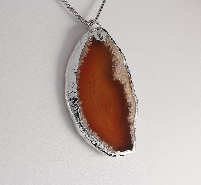 Organic Natural Carnelian Agate Big Slice Pendant **|**|** 114.50CARAT Natural Stone Slab Faceted Carnelian Agate Pendant with Black Rubber Cord Necklace ; MSRP: $0