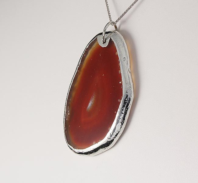 Organic Natural Carnelian Agate Slice Pendant **|**|** 87.50CARAT Natural Stone Slab Faceted Carnelian Agate Pendant with Black Rubber Cord Necklace ; MSRP: $0
