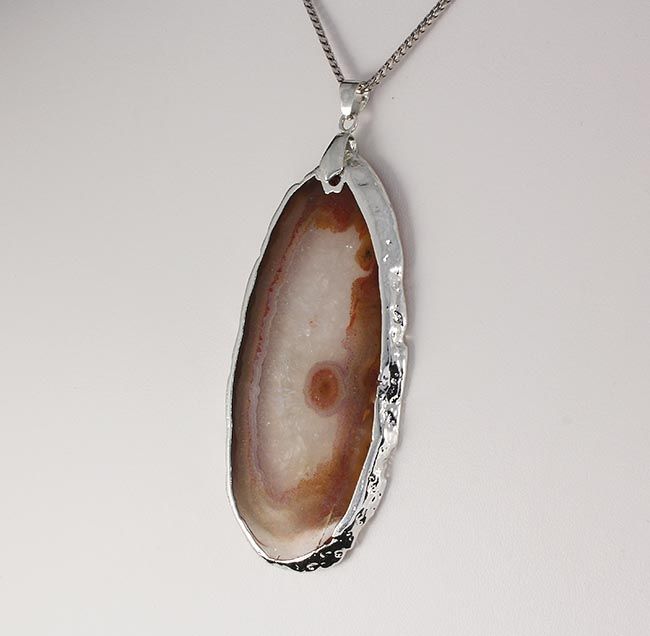 Organic Natural Carnelian Geode Agate Big Slice Pendant **|**|** 108.50CARAT Natural Stone Pendant a Carnelian and Half Transparent Geode Agate Slice with Black Rubber Cord Necklace ; MSRP: $0