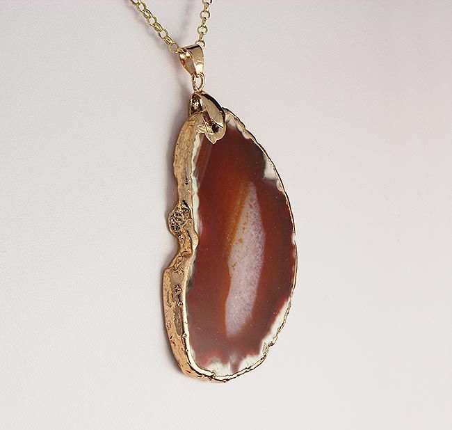Organic Natural Carnelian Geode Agate Big Slice Pendant **|**|** 105.00CARAT Natural Stone Pendant a Carnelian and Half Transparent Geode Agate Slice with Black Rubber Cord Necklace ; MSRP: $0