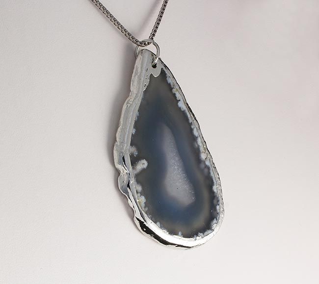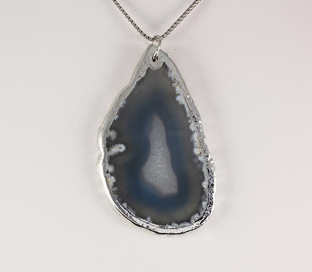Organic Natural Gray Geode Agate Blig Slice Pendant **|**|** 112.50CARAT Natural Stone Pendant a Gray and Half Transparent Geode Agate Slice with Black Rubber Cord Necklace ; MSRP: $0