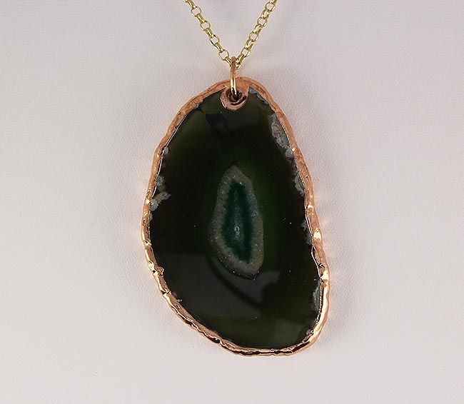 Organic Natural Green Geode Agate Big Slice Pendant **|**|** 119.00CARAT Natural Stone Pendant Druse Green and Half Transparent Geode Agate Slice with Black Rubber Cord Necklace ; MSRP: $0