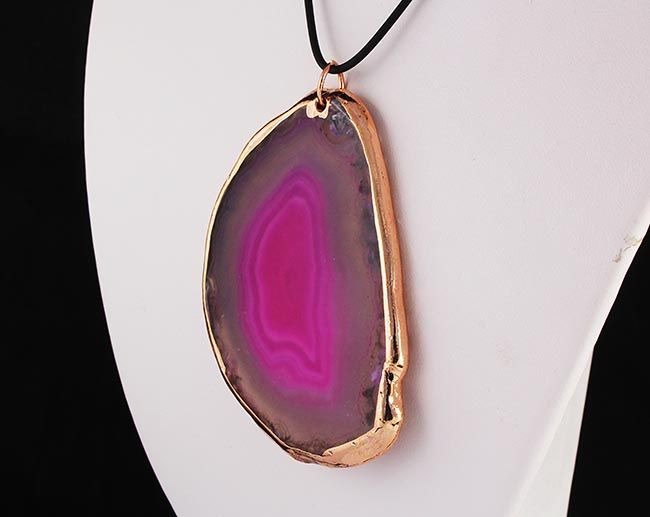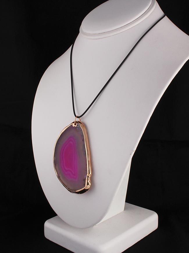 Organic Natural Pink Geode Agate Big Slice Pendant **|**|** 162.50CARAT Natural Stone Pendant a Hot Pink and Half Transparent Geode Agate Slice with Black Rubber Cord Necklace ; MSRP: $0