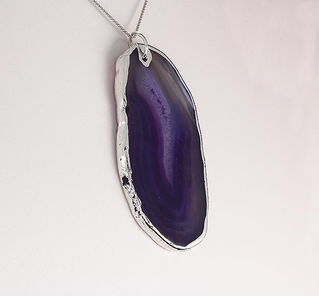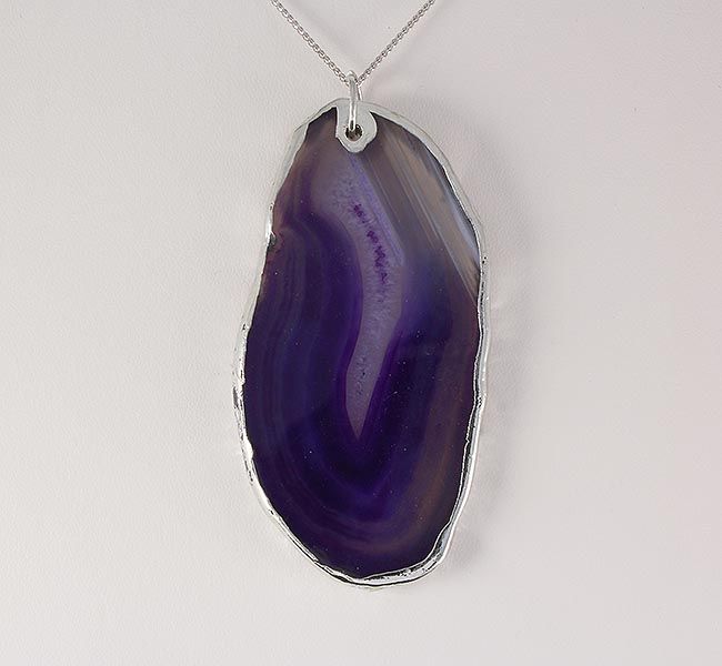 Organic Natural Purple Agate Big Slice Pendant **|**|** 116.00CARAT Natural Stone Pendant Druzzy Purple Agate Pendant with Black Rubber Cord Necklace ; MSRP: $0