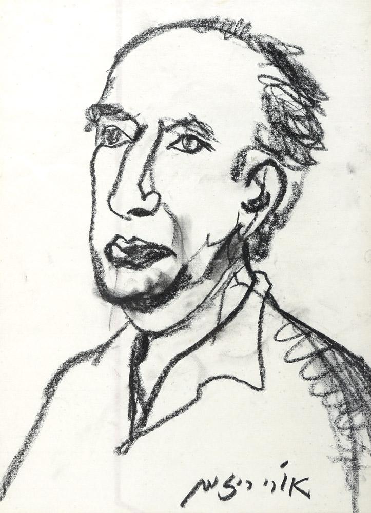 Ori Reisman, Israeli Art, 1924 - 1991, Portrait of a Man, Charcoal, 47x34cm, Signed., , , , ,