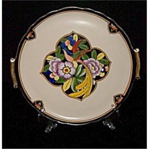 This is a used hand painted serving plate done in very vibrant colors. It depicts a peacock and peonies along with other flowers and leaves. The handles are gold with a black outer rim around the plate. There is some paint loss, as should be expected on a plate this old. The paint appears to be chipped (it's heavy enamel) as opposed to worn... but the detail is still very good and it will display well. Price reflects faults... Order three of anything that can be shipped in one container, pay with PayPal and shipping is FREE!