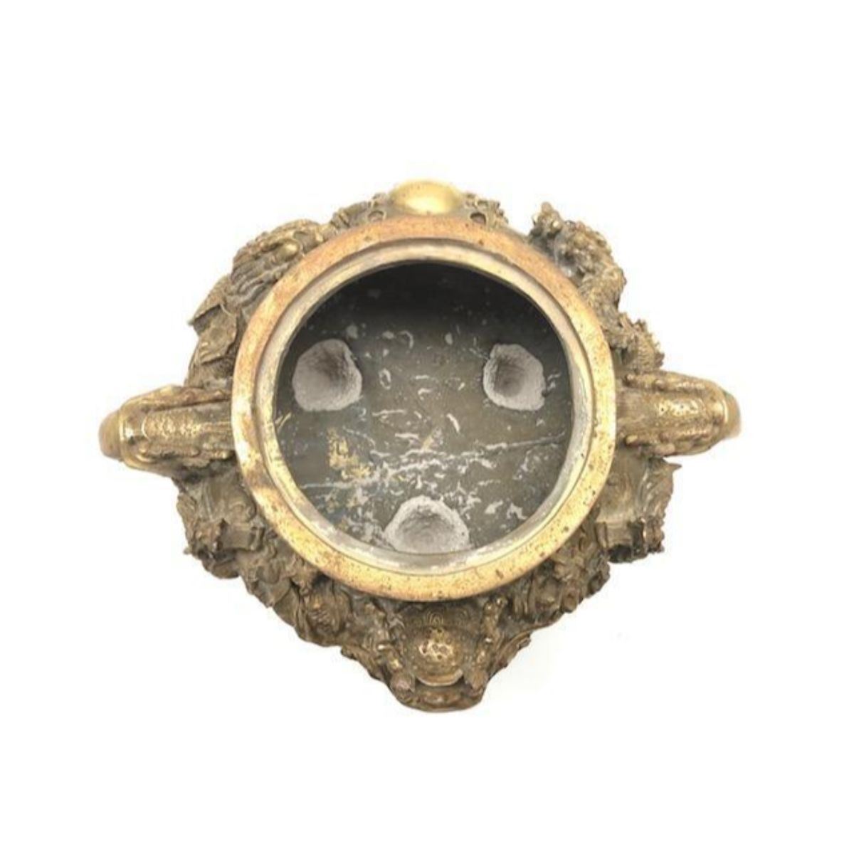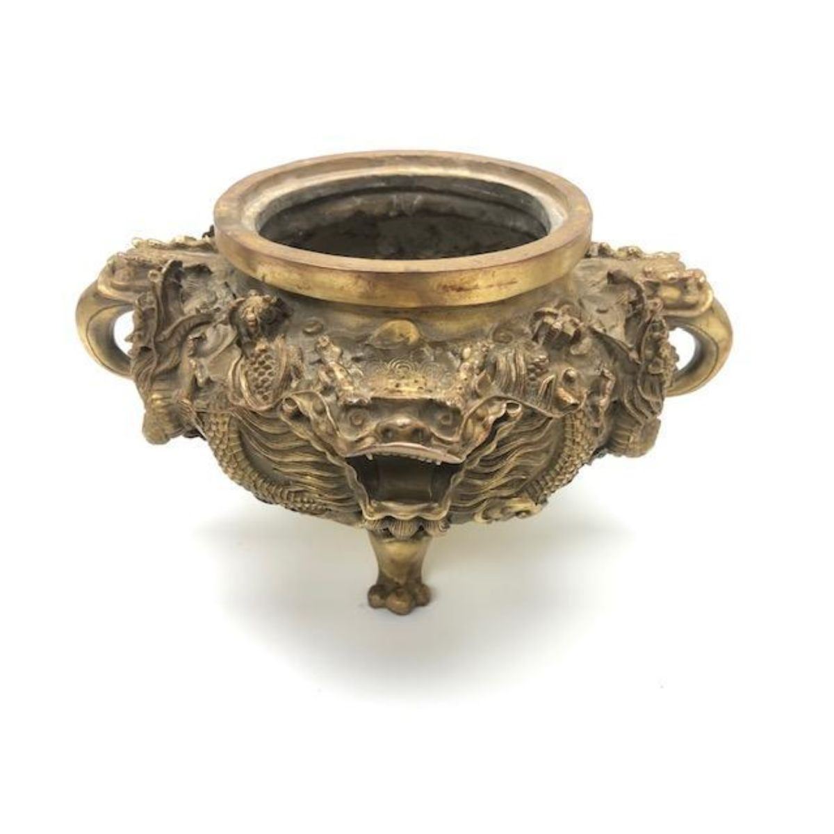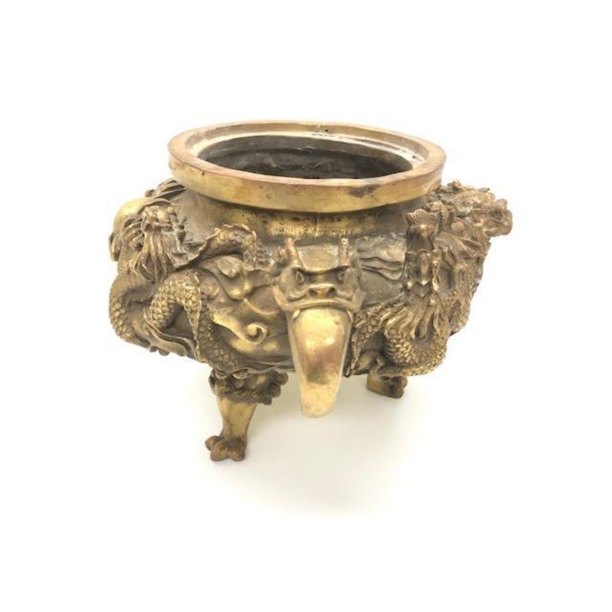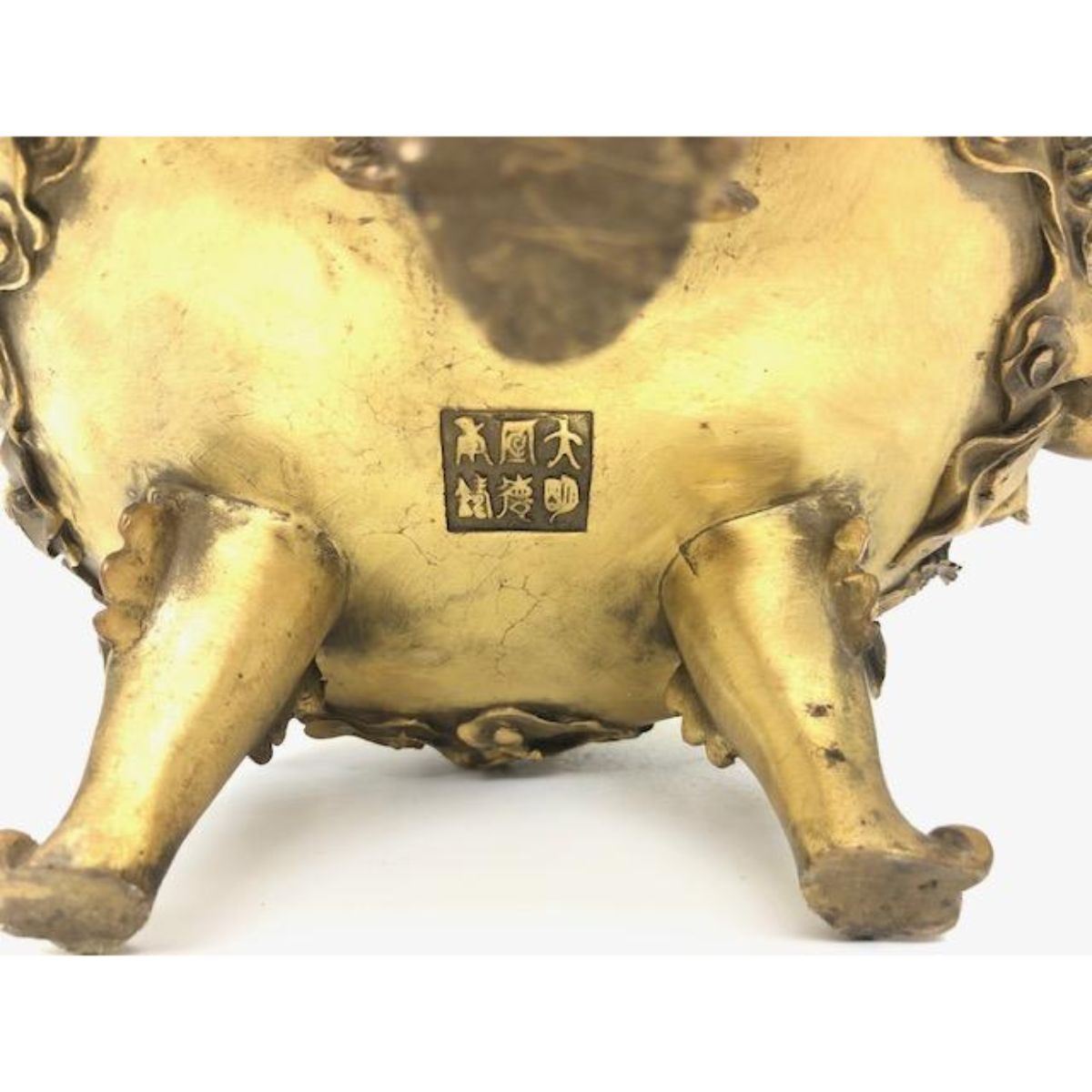 Oriental Dragon & Foo Dog Censor With Reign Mark Gorgeous and highly collectable brass dragon & foo dog censor with Clear Reign Mark on the bottom. Height 6", view photos for more details.