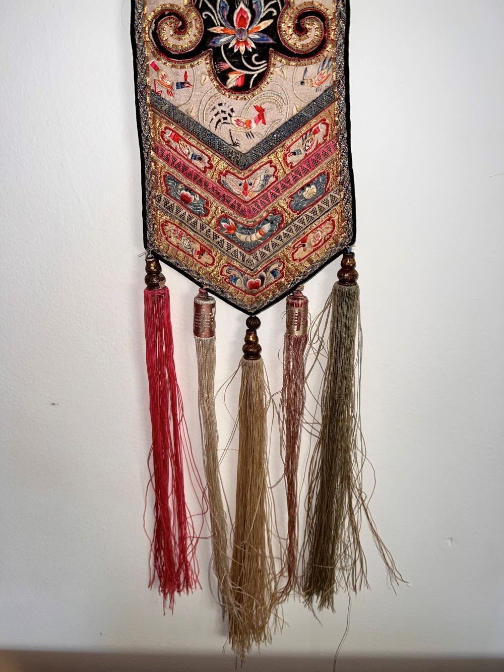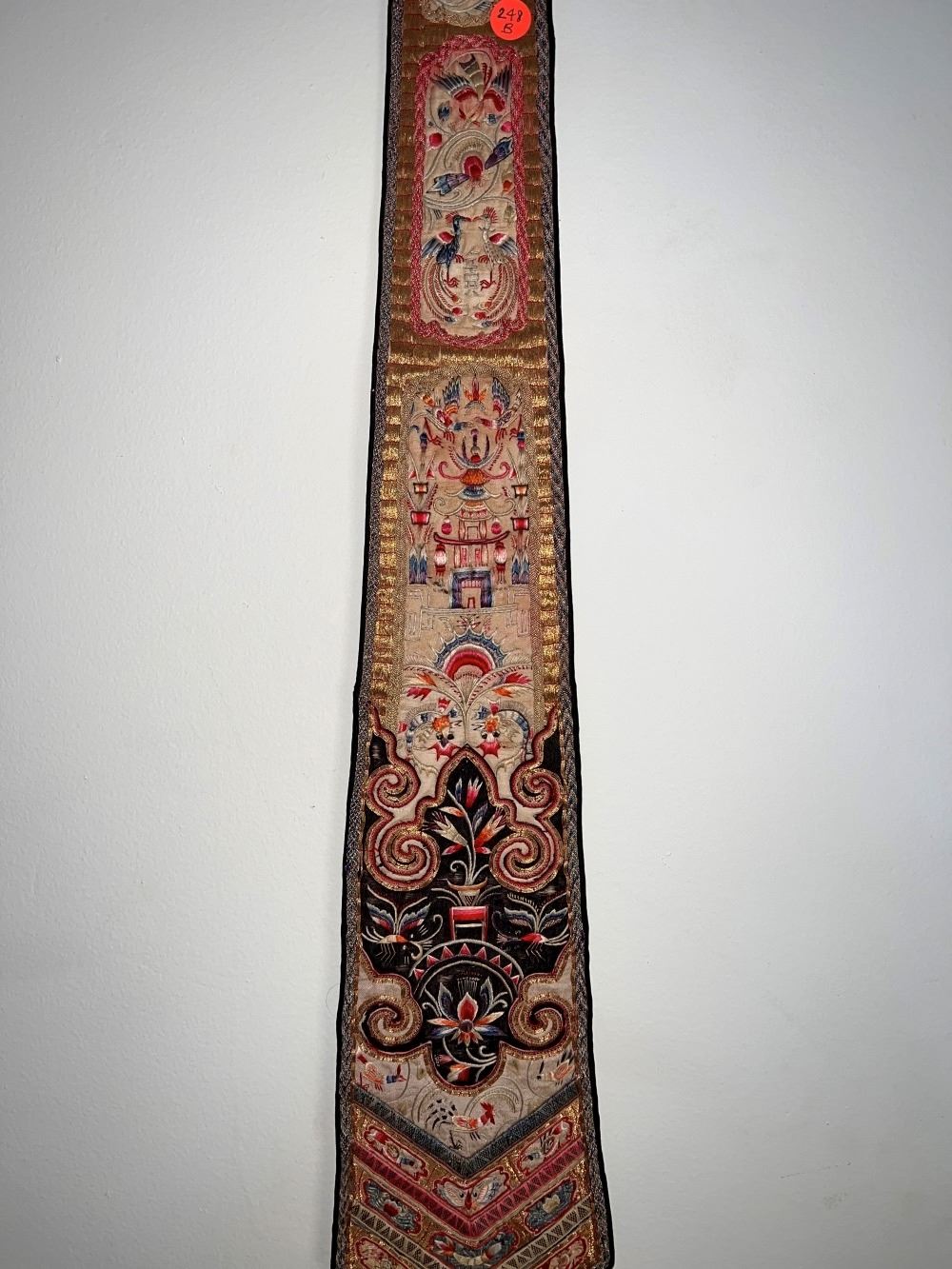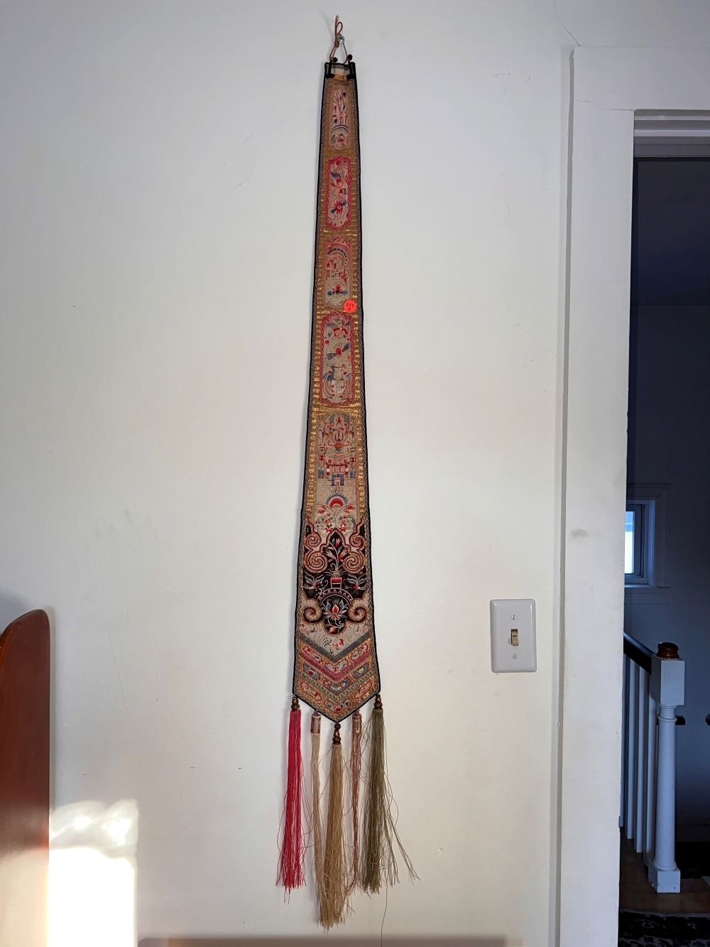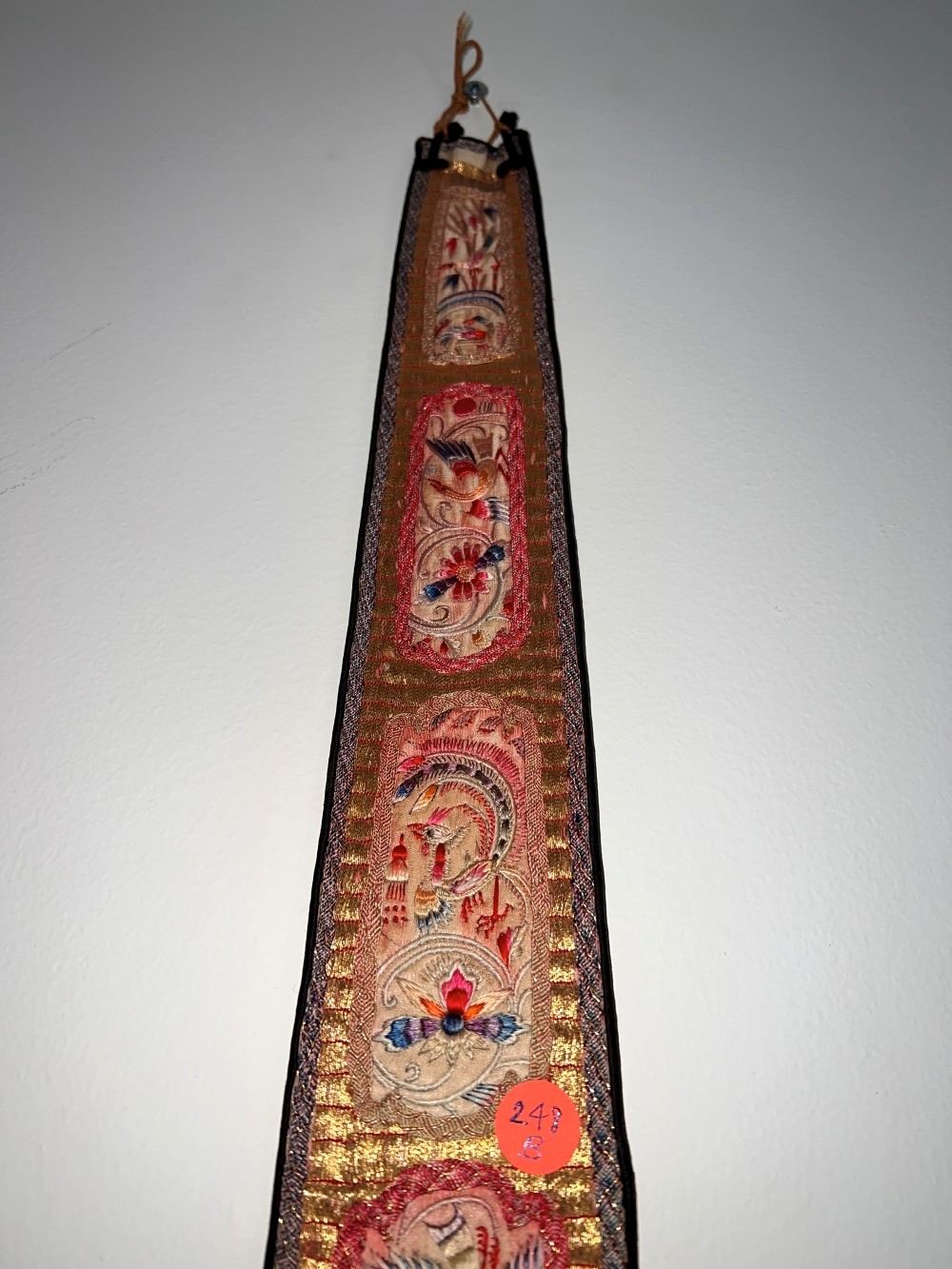 Oriental embroidered ribbon. Measures approx. 52 inches tall.