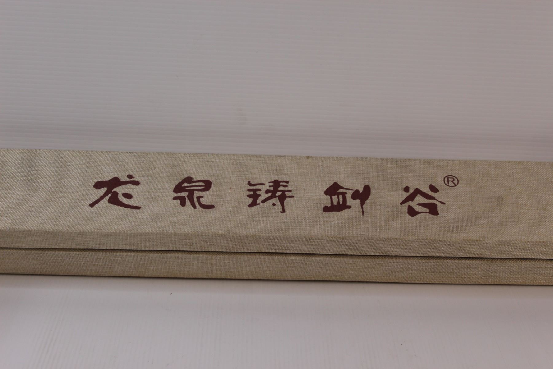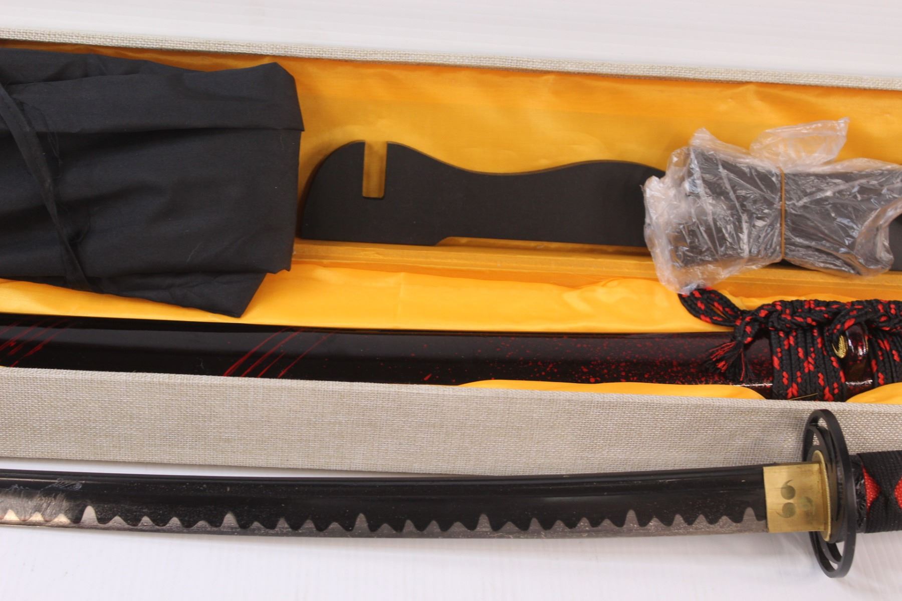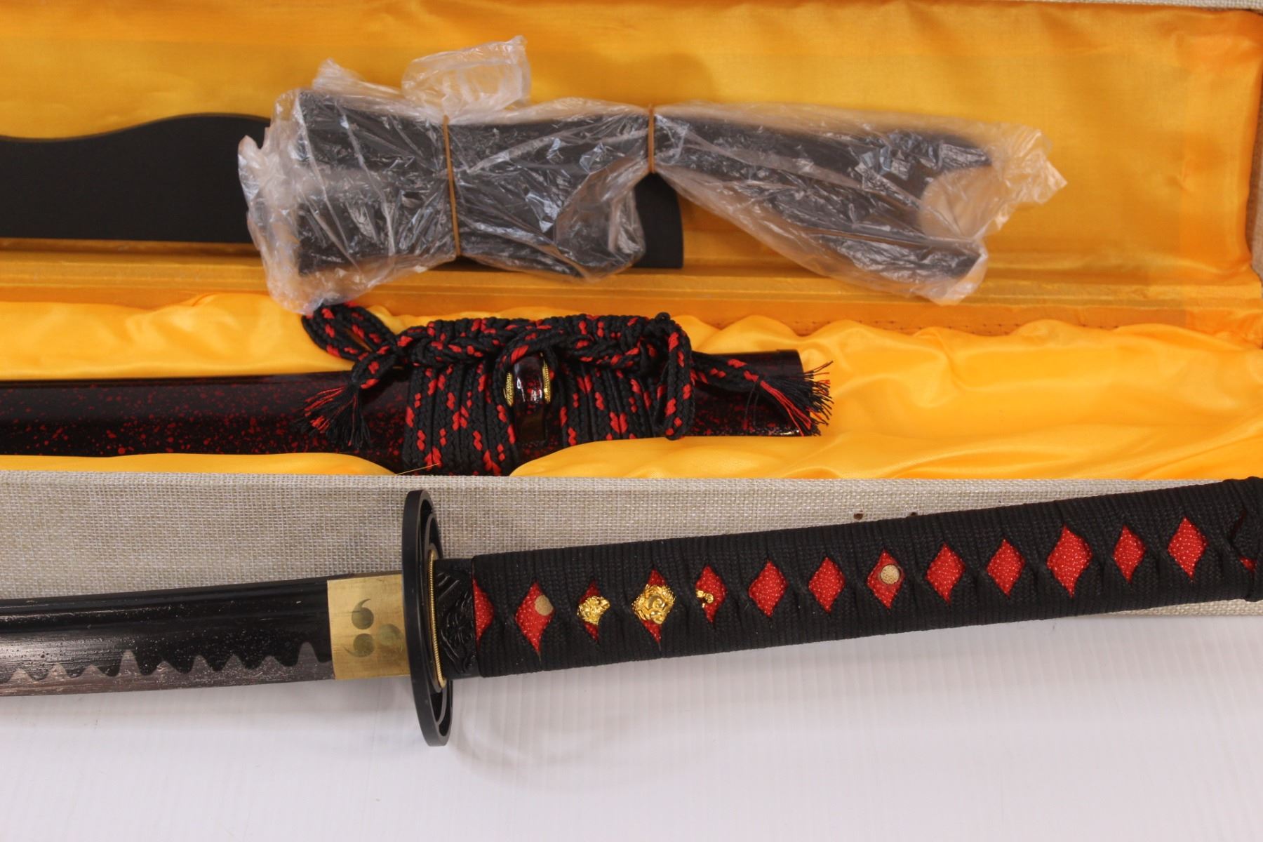 Oriental Katana Style Metal Sword with Stand in Tweed Covered Box 36+" Long Made In China