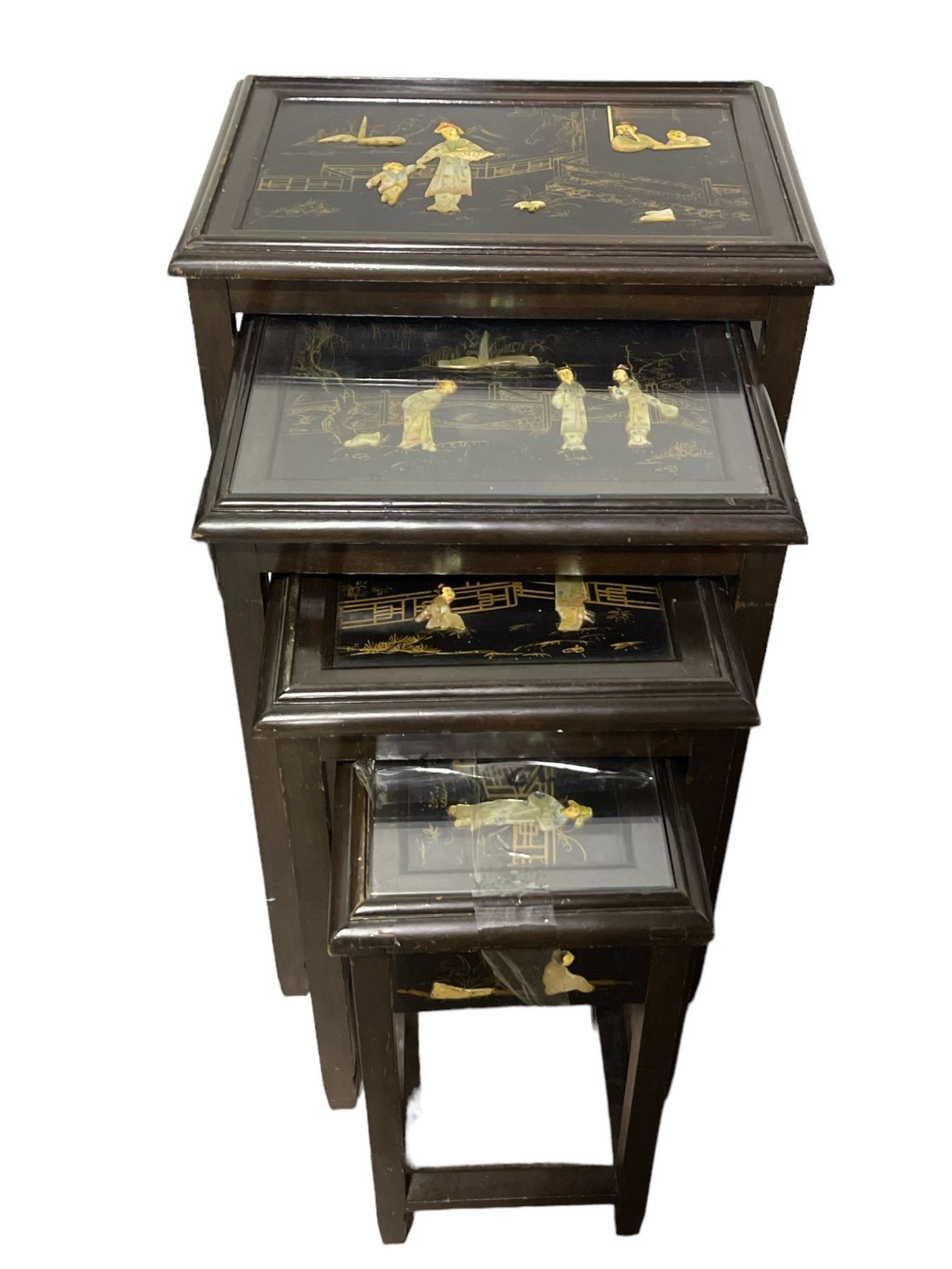 Oriental  Mother of Pearl  inlaid nesting tables (x4 tables in the set)